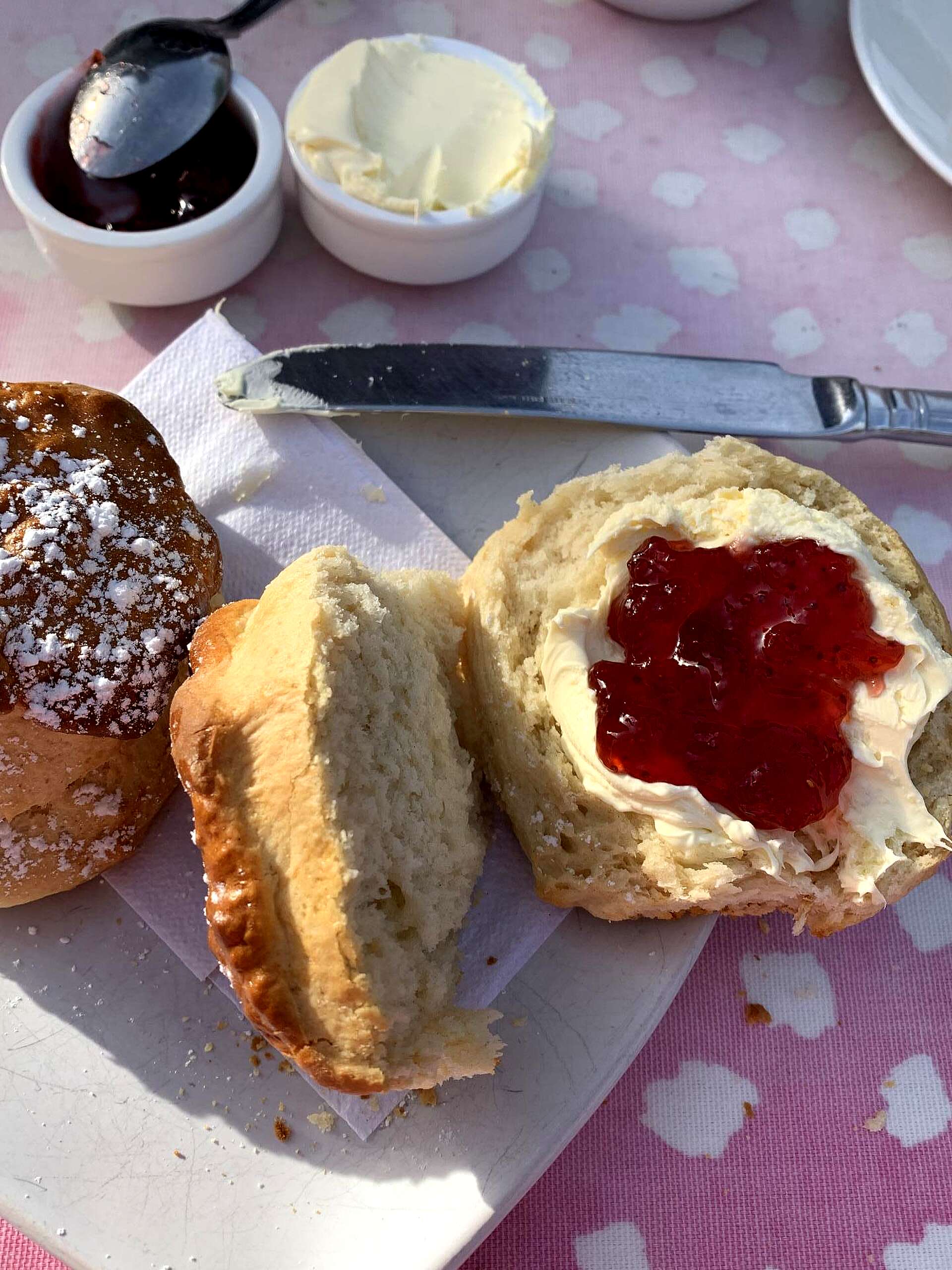 ·Never cut the scone : Simply break apart. The perfect scone should break apart with a simple twist!Just make sure you’ve got your saucer to catch the crumbs.